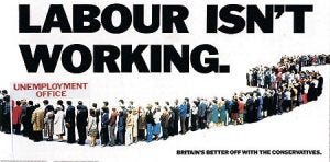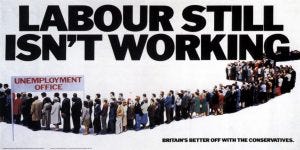 Elections were delayed for a year, next year the Torries released another poster: ‘Labour still isn’t working’.